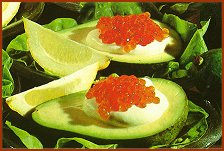 • Vers la fin de cette heure couper les avocats en deux et ôter les noyaux, enduire la chair avec le jus