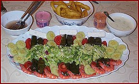 • 3 feuilles de vigne farcies par personne ("dolmades" en grec, "wara inab ateh" en libanais), je les