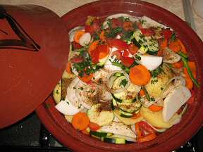 C’est très bon et diététique. Servez dans le tagine avec des faluches fraîches pour saucer et manger avec les doigts, comme là bas !