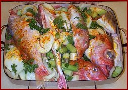 • En même temps répartir les morceaux de poisson dans un grand plat allant au feu,
