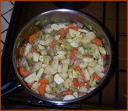Sur la photo on voit les légumes avant l'ajout des liquides.